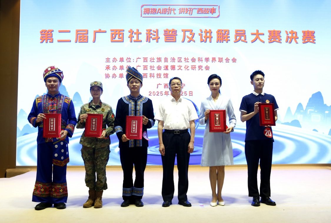 8月25日,由自治区社科联主办,广西社会道德文化研究会承办的第二届广西社科普及讲解员大赛决赛在南宁举行。本届大赛以“拥抱AI时代 讲好广西故事”为主题,来自全区各地的18名社科普及讲解员在赛场上各展风采,以生动的讲述和新颖的表现形式,为观众呈现了一场思想与表达交融、文化与创新共鸣的精神盛宴。