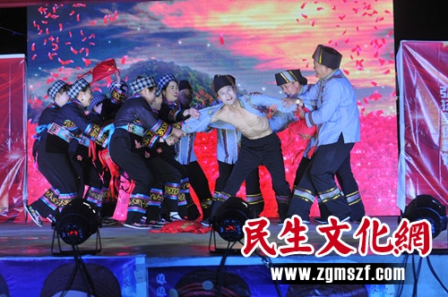 天峨壮族移民文艺队表演的《抹红纳彩》
