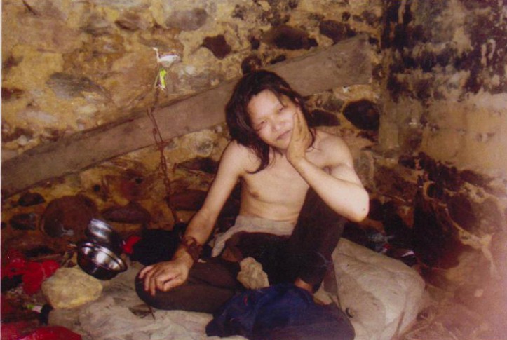 聊后,玉宝带我们去看他被锁的爸爸,现在的他谁都不认识了。潘定永在破旧的泥屋里被锁了三年,坐着就是三年,不说话就是三年,家人何尝不想让他自由,但是担心放他出来到处乱跑甚至伤到村民。整个屋子都弥漫臭味,没有床,地上就铺着肮脏的棉被。冬天冰冷、夏天闷热的屋里,怎么能让人受得了呢。潘定永被锁住手在里头靠墙挨着,看见我们进来,没有一点反应,也没有抬头看,只是在玩地上的小石子,样子、神态和我们看到照片上的一样。玉宝给爸爸送来白米饭配一条萝卜干,家里仅有的粮食,平时家里最好的饭菜就是这个了。潘定永见到是接过饭碗,就用铁片的小勺子捞起米饭大口大口地吃。完全没有意识到旁边有人,只要有吃的就吃,吃完傻傻地坐着。玉宝尝试着喊爸爸,但是潘定永什么都不知道,不知道站在前面的是自己的儿子。玉宝有些失望了,和我们一起走出爸爸的屋子后,玉宝对我们说:“他现在唯一希望就是爸爸能够去治疗,能够好起来。”这是一个淳朴孩子的希望,一个沧桑母亲的希望。