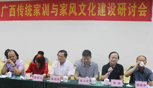 2016年7月25日下午3时许,由广西社会道德文化研究会主办的“广西传统家训与家风文化建设研讨会在南宁召开。来自广西区内部分家庭教育专家、教授、道德模范、作家等35名代表参加会议,共同研讨如何挖掘和传承优秀的家训和家风文化建设。会议由广西社会道德文化研究会副会长杨泽民主持。