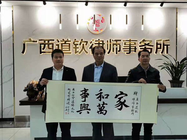 12月24日,应广西道钦律师事务所邀请,广西社会道德文化研究会组织由欧建雍会长担任组长的专家组一行五人,到宜州市开展法治与德治融合调研活动,广西道钦律师事务所主任李胜等20多名律师参加研讨活动。活动分为两个内容:一是举行法治与德治融合座谈会;二是举行“道德文化共建单位”揭牌仪式。