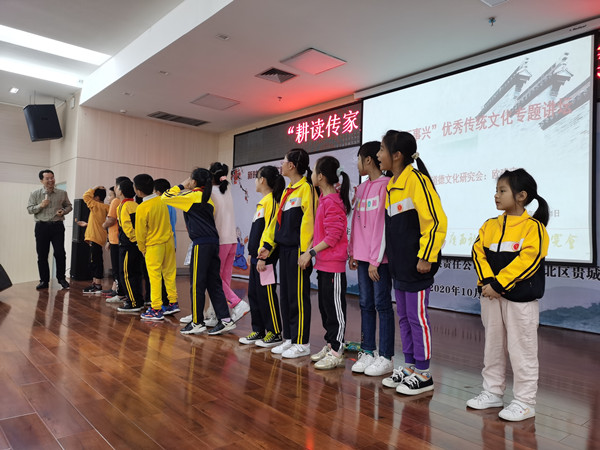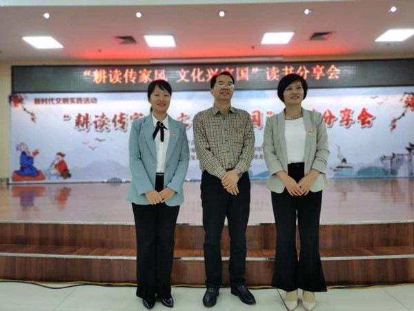 上午9点正,清朗温和的故事朗诵《做一个有道德的人》拉开了读书分享会的序幕,深情并茂的朗诵表演吸引了图书馆内的读书爱好者也纷纷聚拢起来,共同参加读书分享会。接着,广西社会道德文化研究会会长、国家二级心理咨询师,全国优秀社会科学普及专家欧建雍同志进行《耕读传家风 文化兴家国》主题分享演讲,他从家风家训谈到国家兴亡,从道德文化谈到家庭和谐,从读书习惯谈到人生价值。现场读书爱好者时而屏息静听,时而热烈鼓掌。
