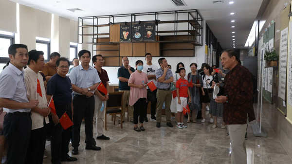 书法家代表在为观众解读抗疫书法的意义