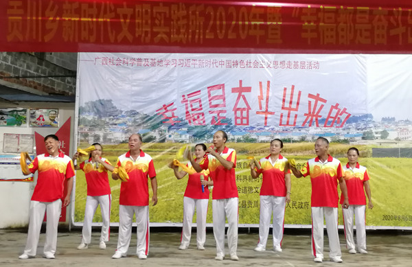 村民们还自觉组织节目参加活动:快板《我们共同的家》和舞蹈《壮美广西富起来》、《郎在高山打一望》等让整个活动气氛高涨、掌声雷动。