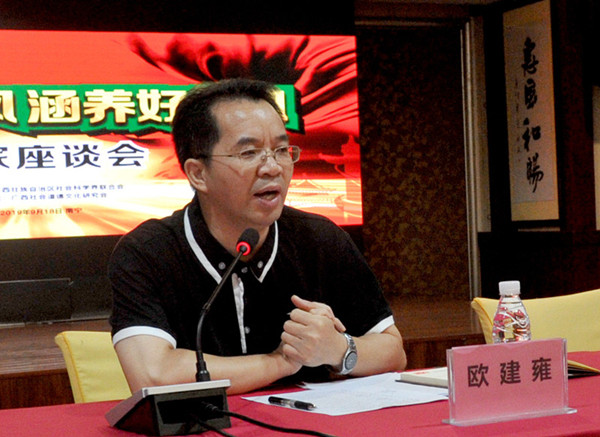 座谈会由广西社会道德文化研究会会长欧建雍主持